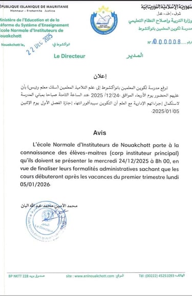 Accueil des élèves-maîtres "Promotion de l'inspecteur Mohamed Yahya Ould Tchfaghanalla "